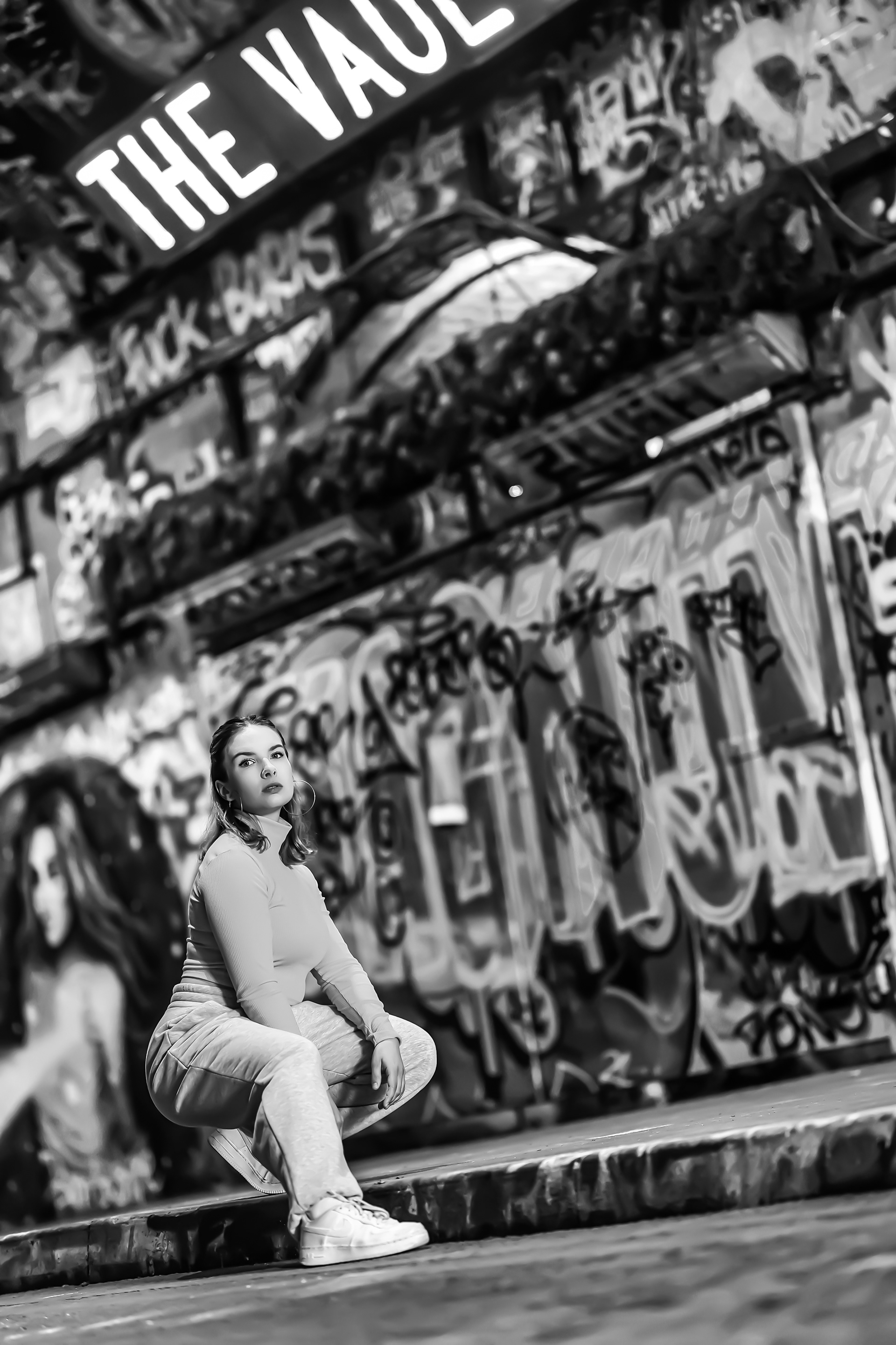 Photoshoot was in London's Leake Street Tunnel with Canon EOS R6 and Sigma 85mm f/1.4 ART lens.